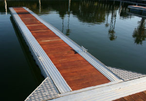 The flotation system is made of hard wearing polyethylene floats which bolt to the aluminium super structure and do not deteriorate in a marine environment. Hardwood timber decking or a variety of composite deckings can be used to finish the surface.